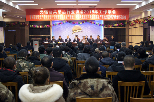 12月4日上午,无锡蔬菜果品行业协会2019年工作年会暨无锡朝阳农产品大市场与全国蔬菜果品生产基地、无锡天惠超市与无锡市蔬菜生产基地2020年蔬果产销合作签约会在朝阳农产品大市场二楼会议室召开。协会会员、基地代表、朝阳集团、朝阳股份和天惠超市主要领导等近200人出席了会议。无锡市工商联副主席窦林先生、无锡市民政局副调研员刘长风先生应邀出席了本次会议。无锡日报、江南晚报、无锡广播电视台等主流媒体记者到会采访。