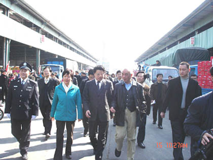 2007年2月15日上午,江苏省委常委、无锡市委书记杨卫泽率市有关职能部门的领导,来到朝阳农产品大市场视察慰问。朝阳集团公司董事长张海良、总经理杨兴德陪同视察。