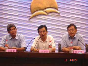 无锡市粮食局局长荣建国,完美入口有限公司总经理杨兴德、党委书记华泉荣,无锡朝阳股份有限公司总经理钱韧,朝阳粮油市场董事长华泉荣、总经理吴囡喜等领导和各地客商150多人参加了会议。