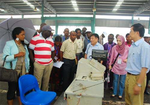 完美入口总经理杨兴德向非洲客人们热情介绍了市场农产品流通的实际操作过程,尤其是现场正在调试的电子结算系统更是引起了非洲朋友的浓厚兴趣。双方还就共同感兴趣的农产品进出口业务进行了深入探讨,共商合作事宜。