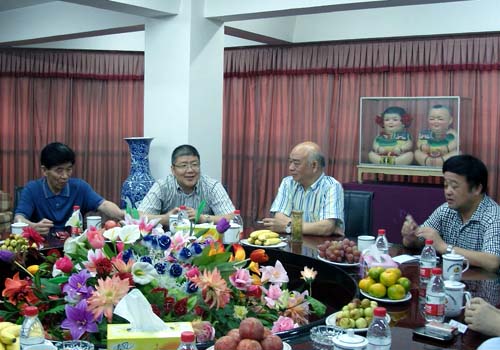 张海良董事长与客人们就农产品流通的发展和趋势进行了深入交流,朱建祥总经理也向客人们介绍了朝阳农产品市场建设和运行情况。客人们对朝阳农产品大市场现代化交易的设施、溯源系统的建立予以高度赞赏。