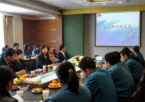 朝阳集团常务副总经理张君君主持座谈会。她向与会的中青年骨干们介绍了朝阳集团风雨沧桑的历史变迁,以及朝阳集团不断发展壮大的辉煌历程。与会代表们无不为之动容,为之欢欣鼓舞。围绕企业的发展,个人的成长,以及对未来的展望,代表们群情激昂,畅所欲言。精彩的演讲,诚挚的感言,那是代表们发自肺腑的心声,更是对朝阳事业的满腔热爱。整个座谈会在轻松、和谐的氛围中展开。朝阳集团党委书记钱韧、总经理杨兴德也专程到会,聆听了代表们的发言。钱书记还发表了热情洋溢的讲话,对青年人寄予了厚望。