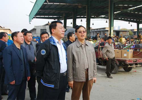 朝阳集团副总经理、朝阳股份公司总经理朱健祥,朝阳蔬菜市场经理尤勇向客人们介绍了蔬菜交易现状、蔬菜品种行情以及合作的可行性。