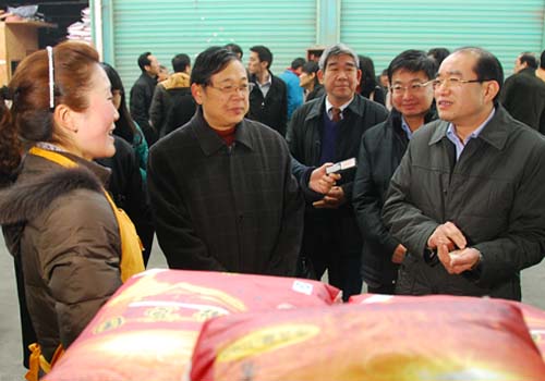 徐副市长一行还来到专门经销东北大米的商铺前,仔细询问东北大米的产地、品种、价格情况,当得知这些优质东北大米在无锡市场很受欢迎时,他高兴地向这位客商表达感谢和新年祝福。并希望各位客商一定要把好商品安全关,为无锡提供更多优质放心的商品。