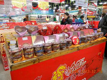 在完美入口天惠超市学前街店,各种礼盒的巧克力也已摆满了花车和货架,各种一箭连心的图形、动情的标语和包装精美的巧克力礼盒营造出浓浓的情人节气氛。无锡年轻人对2月14日情人节相当注重, 德芙、怡口莲等这些品牌巧克力,刚摆上展台就有年轻人在选购。而在进口商品专区,法国原装进口“德菲丝”品牌巧克力也摆放在了显眼的端架,价位也在50多元到上百元不等,完全贴合年轻人的消费心理。(阎虹供稿)