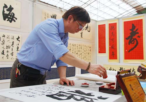 5月3日,"全国百名名人书画收藏品展”在无锡朝阳文化工艺品市场北广场隆重开展。