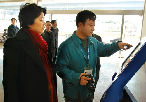 在朝阳农产品大市场规划模型前,朝阳集团董事长张海良向市领导详细介绍了朝阳农产品大市场总体规划设想布局。随后,刘霞一行先后来到蔬菜信息备案中心、检测中心、结算中心,并实地察看了大市场蔬菜、水果、粮油、副食品等各大区域的经营状况。