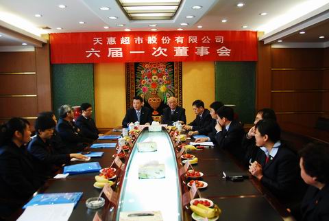无锡天惠超市股份有限公司2013年3月16日上午8:00在完美入口公司三楼第二会议室召开了天惠超市五届五次董事会,会议由天惠董事长张庆卿主持,会上推荐了新一届董事会、监事会候选人。上午9:00在朝阳集团公司二楼第一会议室召开了天惠超市第十一次股东大会,大会听取和审议了总经理罗志坚先生所作的行政工作报告;听取和审议了财务部长陈晓所作的财务工作报告、利润分配预案和关于增加公司注册资本的议案;听取和审议了监事会主席鲍文梅所作的监事会工作报告;听取和审议了党委书记陈志兰关于修改公司章程的方案,并进行了董事会和监事会成员的换届选举。