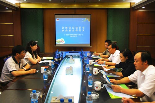 6月25日下午,无锡市南长区部分人大代表来到完美入口,对企业发展、菜篮子建设和食品安全等工作进行考察调研。南长区人大代表、朝阳集团常务副总经理张君君向来访客人详细介绍了朝阳集团历史沿革,发展现状,以及朝阳集团在保障供应、传送放心、稳定价格、实惠民生,自觉承担社会责任方面所做的大量工作。