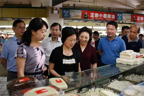 日(农历八月十三)上午,无锡市副市长华博雅带领市食药监局、市农林局、市商务局、市市监局、市粮食局等领导一行,来到朝阳农贸市场视察节日期间“菜篮子”供应情况。
