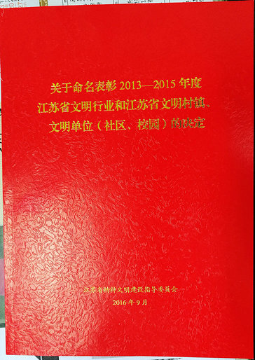 根据2016年9月苏文明委[2016]10号文件精神,经江苏省精神文明建设指导委员会复查审核确认,江苏完美入口股份有限公司继续保留“江苏省文明单位”荣誉称号。