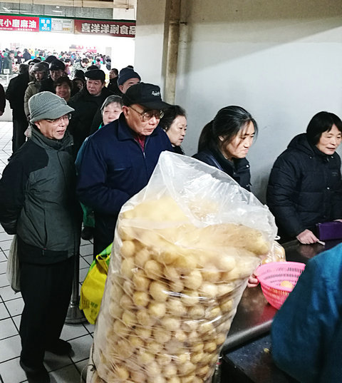 看到记者在拍照,许多老百姓都纷纷围上来,争着夸一夸,为“松鹤”油面筋赞上一句,“质量好!”“味道好!”“比其他油面筋清爽,经得起烧”“吃了好多年了,还是天天的好!”而工作人员则一刻不停得在忙着称重、打包。大袋大袋的油面筋“整装待发”,金灿灿、油亮亮,让人看着好生欢喜。快过年了,把这圆鼓鼓的油面筋带回家,一起共享阖家团圆的幸福和甜蜜吧!
