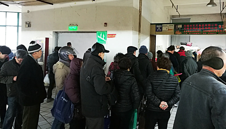 一早,朝阳农贸市场二楼天天食品厂营业门面前已经排起了长龙,甚至要转几道弯。他们都是冲着天天厂生产的“松鹤”油面筋的好味道而来。油面筋,是无锡老百姓过年头里少不了的一道配菜,酿面筋、炒面筋、烫面筋,似乎什么蔬菜都能和油面筋来个“混搭”,吃上去口感既滑爽,又带着韧劲,甚至生吃都可以,咬上去香香脆脆,家里老老小小都喜欢。而许多外地游客也会慕名而来,把大包小包的油面筋带回去,把无锡的好味道带到四面八方去。