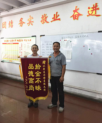 6月25日上午10点左右,朝阳股份水果业务办公室收到一面锦旗,表彰水果市场司磅员陈文清同志拾金不昧的高尚品德,原来事情的经过是这样的: 6月23日下午12时许,水果市场3号棚司磅员陈文清在工作中突然发现C3区电子秤上有一只黑色背包,里面有1张身份证、2张银行卡和2万多元的现金。他立即交到了水果业务办公室。经理室人员通过市场广播、微信会员群等多种途径寻找失主,迟迟没有消息。直到当天下午3点左右,一对夫妻心急如焚地走进水果业务办公室,核实了失主身份,事情总算有了结果。 经了解,失主毛吉忠是水果市场的一名进货会员。当天,他和妻子在进货过程中不慎将货款遗失。当得知失物完好无损时,激动之情溢于言表,为深表谢意,他们送来了锦旗。 陈文清同志拾金不昧的高尚品德值得我们每一位员工学习,在市场推进现代化品牌市场建设的过程中,这件事情也充分展现了水果市场全体干部员工奋发向上、全心全意为客服务的良好精神风貌。