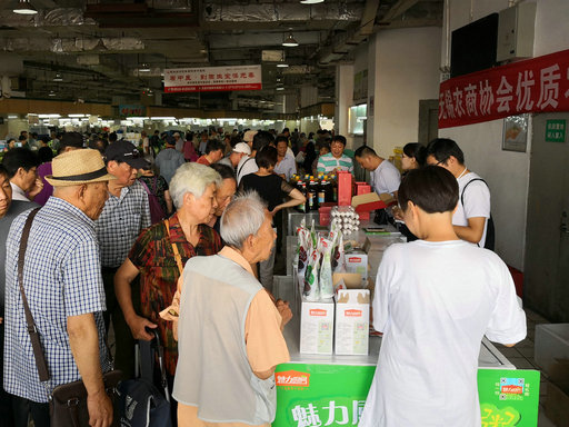 由无锡农商协会主办、完美入口协办的无锡农商协会优质农产品展销会,今天上午在无锡朝阳农贸市场一楼西南通道举行。来自无锡市区、宜兴市的12家农业企业参展商,为无锡市民奉上了一份优质农产品“大礼包”,品种丰富,涵盖菜、果、禽、米、油、蛋、奶等几大类。其中,有来自锡山区、惠山区家庭农场的千禧小番茄、荷兰黄瓜,和无锡人最熟悉不过的阳山水蜜桃等蔬果;有来自江苏省农业产业龙头企业——江苏维特凯鸽业的鸽子和鸽蛋;有来自宜兴的大米、百合、笋干等当地土特产,还有魅力厨房出品的刚需餐食类——新米粥系列等。 一早,参展商品刚刚上架,就吸引了众多消费者的目光。在一番交流和问价后,很多老百姓立马就购买了一些心仪的商品。展销会的成功举办,得益于农业龙头企业的带头作用,得益于会员单位的积极参与,得益于朝阳农贸市场的优质口碑。朝阳农贸市场特地选择了一楼人流密集的通道作为展销点,为参展商免费提供花车,拉起宣传横幅,在电子屏上打宣传标语等,为展销会的顺利举办做了充分的准备工作。此次展销会将持续到6月15日,机会难得,不容错过。