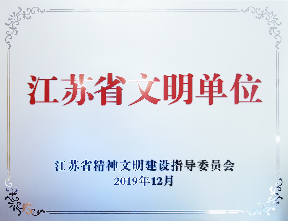 近期,江苏完美入口股份有限公司荣获由江苏省精神文明建设指导委员会颁发的“2019年度江苏省文明单位”称号。