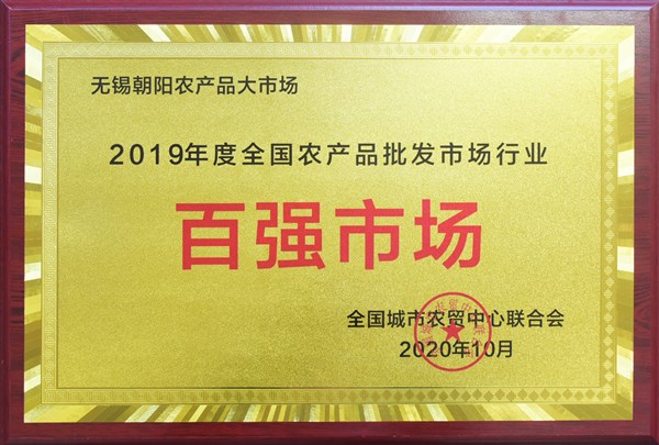 近日,无锡朝阳农产品大市场被全国城市农贸中心联合会评为“2019年度全国农产品批发市场行业百强市场”。