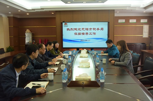 4月15日上午,无锡市税务局财产和行为科张晓阳科长、王晓东副科长率队走访调研朝阳集团。集团董事长张君君热情接待了无锡市税务局代表一行。