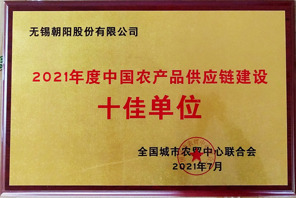 无锡朝阳股份有限公司荣获“2021年度中国农产品供应链建设十佳单位”称号
