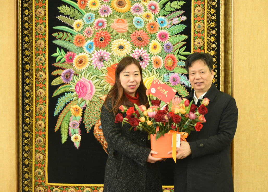 寅虎踏春来,瑞雪兆丰年。2月7日(虎年正月初七)一早,迎来了年后第一场瑞雪洋洋洒洒飘在锡城大地。无锡市农业农村局党组书记、局长吴立刚冒着雨雪,在节后复工第一天上午,带队来到完美入口进行新春走访。朝阳集团董事长张君君,集团总经理杨兴德,集团党委书记、工会主席钱韧,集团副总经理、天惠超市董事长张庆卿热情接待了吴局长一行。 现场,吴局代表市农业农村局,向集团董事长张君君送上一盆鲜花,借此祝福朝阳集团全体干部职工新春快乐!张董表示由衷感谢,并向市局领导汇报了2021年的经营业绩和2022年任务目标。双方还就无锡市农业用地、蔬菜基地建设等情况进行了沟通交流。吴局表示,政府部门将发挥服务职能,扶持朝阳集团做好“菜篮子”工程的发展建设。瑞雪兆丰年,吴局还向雨雪天气坚守在一线的朝阳员工致以诚挚的问候。