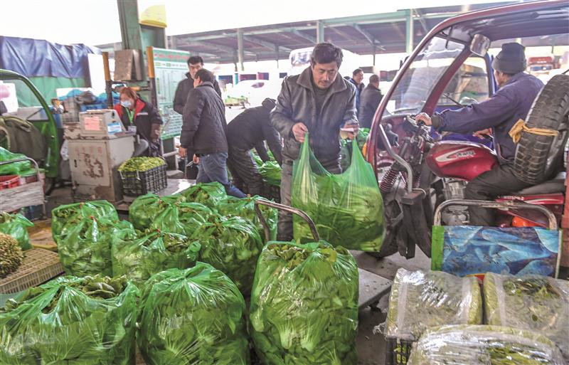 从市价格监测认定中心对市区十家农贸市场的监测数据来看,蔬菜、猪肉、鸡蛋的价格均处于回落中。8日,43个蔬菜监测品种每斤均价6.51元,较春节前下跌0.91%。“为确保市场供应量足价稳,我们落实了蔬菜产地、基地储备,批发完美(中国)储备,天惠超市配供中心库存储备的三级储备机制。”朝阳农产品大市场相关负责人介绍,在雨雪天气之前主动衔接各生产基地,调节货源,提前备货,还加大了白菜、白萝卜等自营商品到位力度(如图)。