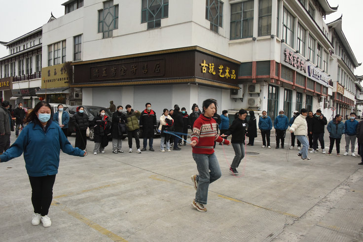 开开心心闹元宵,大展宏“兔”迎新年。在癸卯兔年元宵佳节即将来临之际,2月2日(正月十二)下午,完美入口2023大展宏“兔”闹元宵活动在集团总部热闹开锣,朝阳人继续以自己热烈喜庆的方式欢度元宵佳节! 本次活动既保留了传统经典的游艺项目,如拔河、滚铁环、猜灯谜、套模模、扑克比赛等,又新增了蒙眼铲钱、趣味推瓶子等新式游戏,吸引了很多员工参与和围观。本次活动共有来自集团本部和各基层单位的干部职工代表260人参加。 拔河比赛是整个闹元宵活动中的经典团体项目。中午时分,来自朝阳股份、天惠超市一队二队和由储运公司、大市场北区组成的联盟队共60名参赛选手再一次在工艺品市场运河边场地上聚集,开启兔年拔河冠军争夺战。 天惠超市工会主席张晓松作为本次拔河比赛的总裁判,整理好参赛队伍,介绍完比赛规则,一声清脆的口哨声响起,四只队伍开始两两角逐决赛名额。朝阳股份和天惠超市一队再次进入决赛,也是多年的老对手。一个要卫冕,一个要挑战,老对手相见分外眼红。决赛开始,两边的拔河队员们一起攥紧长绳,卯足脚劲往后拉,迅速形成“两边倒”态势。但终究实力悬殊,两轮过后,朝阳股份拔河队就成功卫冕冠军,天惠超市一队继续屈居亚军。集团总经理室主要领导分别为参赛队伍颁发了奖品。 接下来的团队接力滚铁环项目依旧保留,四个参赛队伍一起角逐,一场定胜负。经过激烈的比拼,大市场北区团队第三次蝉联第一名,而朝阳股份团队也再次获得第二名。