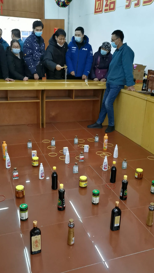 扑克比赛既有掼蛋高手,也有新人练手,既需要牌技,也需要运气。捉对比拼下,最终冠亚军在朝阳股份两组选手之间角逐,最后吕雪芳/屠义组合战胜了沈浩/徐洪林组合,获得了第一名。 三楼的综合游艺处早已是熙熙攘攘,人头攒动。特别是在套模模、蒙眼铲钱等区域,围观群众已是里三层外三层。参加游戏的带点小紧张,在旁观看的则加油鼓劲,大家还互相切磋技巧,在游戏中放松了身心,喜笑乐开怀。