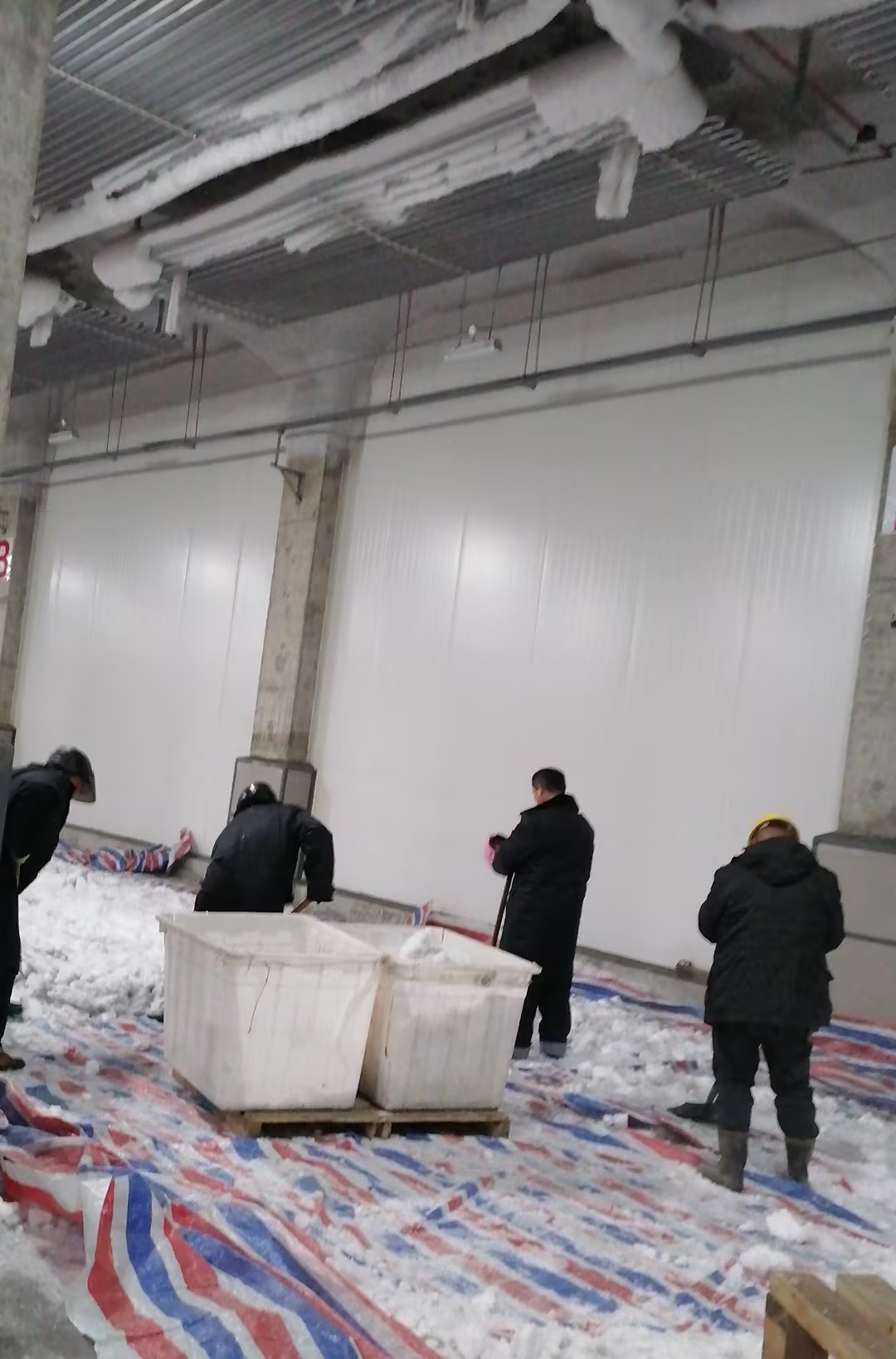 朝阳冷库是朝阳农产品供应链中的重要节点,负责农产品的低温储藏功能,由于商品进出库频繁,冷库库门经常开关,导致蒸发排管表面结霜,影响制冷效果。为使冷库保持稳定低温,确保货物存储状态,降低设备耗能,朝阳冷库联系厂家、组织员工、协调搬运,共同开展冷库9、10号库除霜工作。