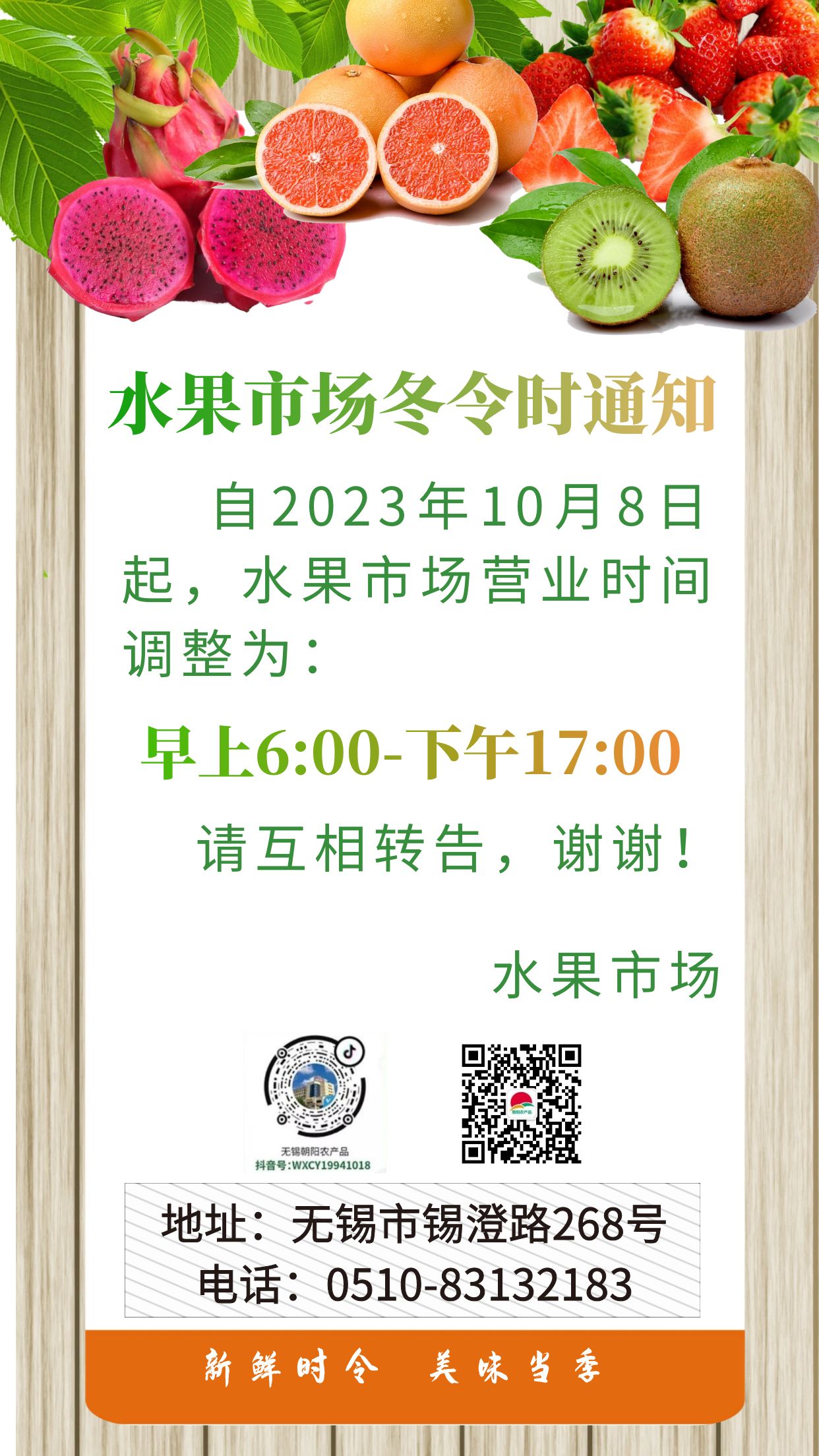 自10月8日起,朝阳股份水果市场营业时间作季节性调整,由原来的早上5:00~下午17:00调整为: