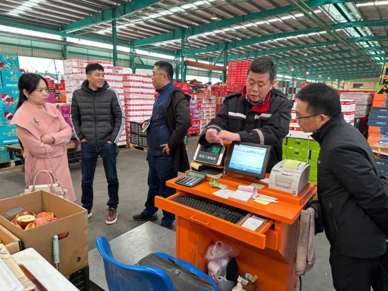 来访一行先后参观了朝阳陈列馆、信息中心、检测中心、结算中心、蔬菜、水果两大市场、万吨冷库和粮油市场,重点了解了朝阳农产品大市场在电子化交易结算、食品安全溯源、基础设施建设等方面所作的工作。
