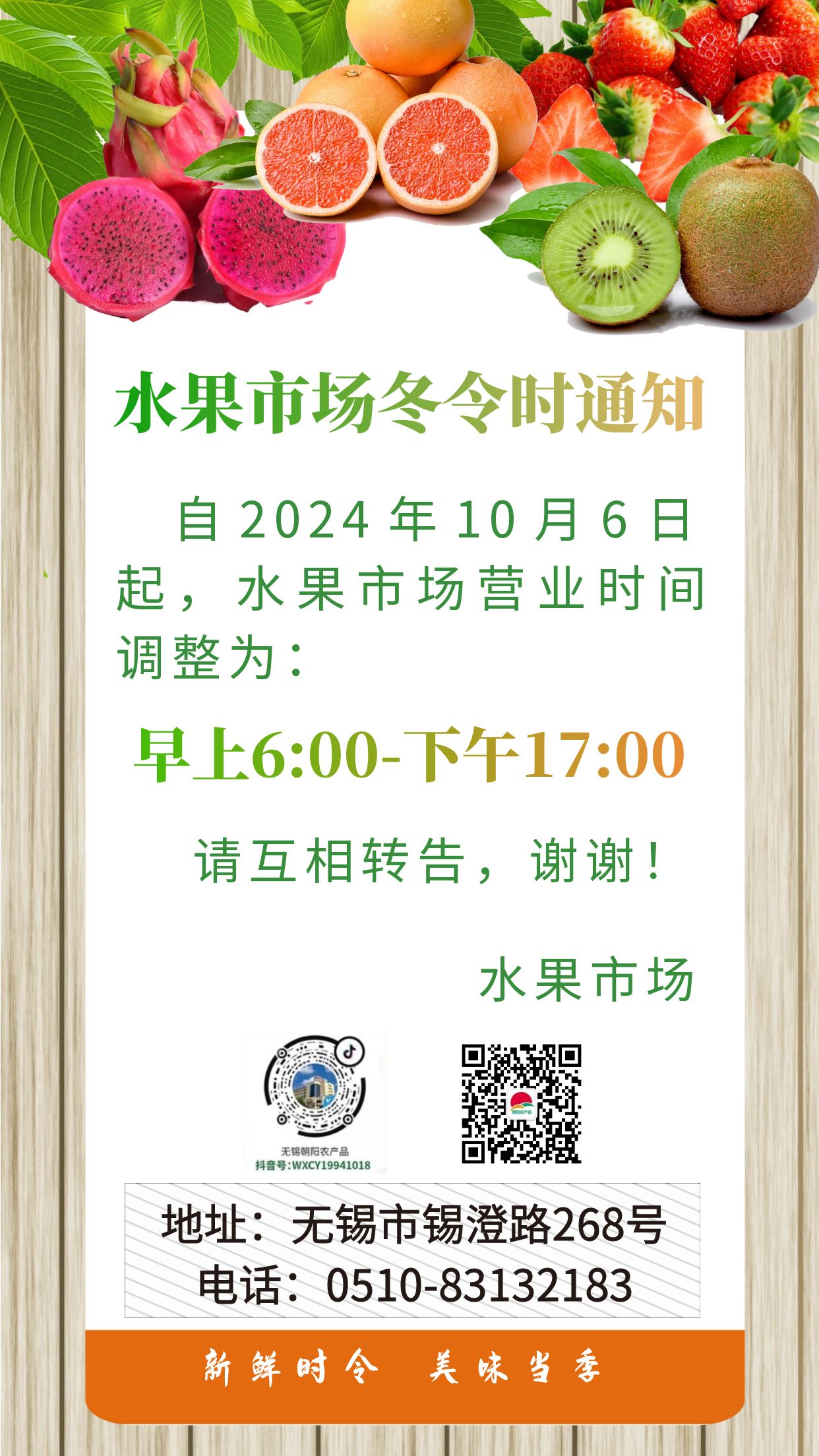 日起,朝阳股份水果市场将调整为冬令时营业时间:
