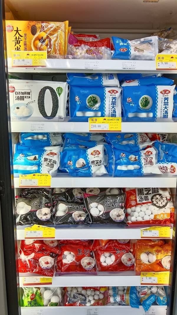 除了现成的汤圆外,天惠超市还贴心地提供了各种散糯米粉、水磨粉以及豆沙馅等原材料,供顾客自行制作汤圆。这样的设置不仅满足了消费者对于个性化口味的追求,更让每一位顾客都能在这个冬至时节里亲手制作一份专属的甜蜜与幸福。
