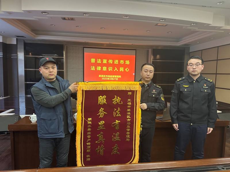 为感谢一直以来梁溪区市场监督管理局对市场及广大经营户的支持关心,客商代表特制锦旗赠予区局,向区局全体工作人员表示最诚挚的敬意,也祝愿区局各项工作顺利,再创佳绩!