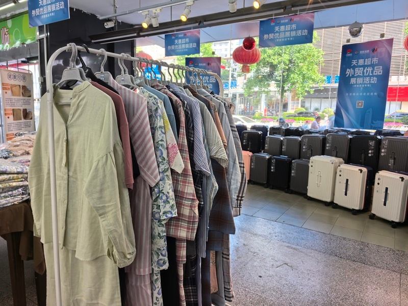 走进天惠超市学前街店,左手边的外贸优品展销区映入眼帘。目前,该外贸优品专区已陈列了纺织服装、智能家电、旅行箱包等几十款优质外贸好物,每一件都散发着独特的魅力,等待着消费者来“零距离”体验。
