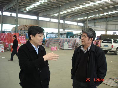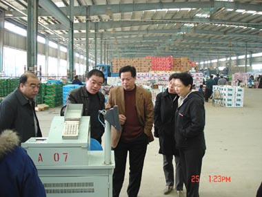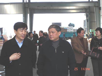 3月25日,天津果菜食品公司领导一行六人来我市场参观考察。朝阳集团公司书记华泉荣,朝阳股份有限公司副总经理汤建兴和锡澄市场副经理于坚忠陪同。