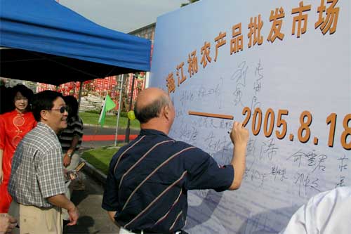 18日,上海江杨农产品批发市场正式开业,张海良董事长作为嘉宾走上主席台祝贺。江杨新市场的规模和管理模式,将为建设中的朝阳农产品大市场提供值得借鉴的经验。