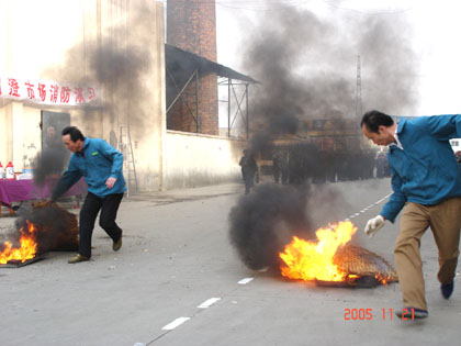 为进一步提高全体员工消防安全意识,大力推进全国第14年“119”消防宣传活动,11月21日,锡澄市场举行了2005年度消防演练。本次消防演练共分轻水、草包、机电男女组多个项目进行。